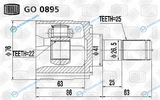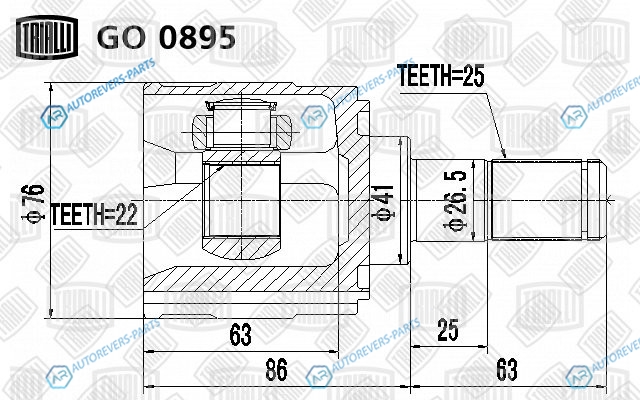 Сторона установки:передний мост | Длина [мм]:149 | Диаметр [мм]:76 | Внутреннее зубчатое соединение со стороны дифференциала:22 | Внешнее зацепление со стороны дифференциала:25