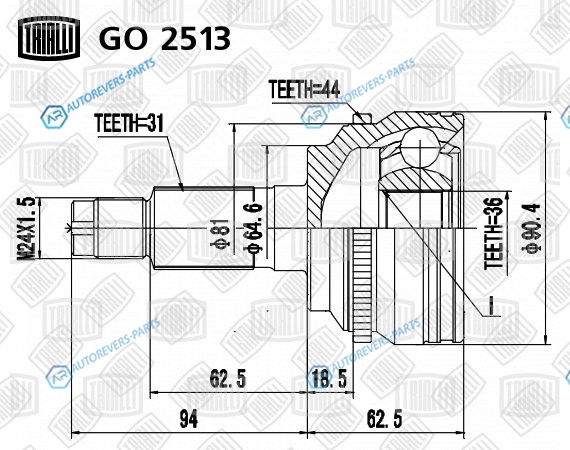 Купить GO 2513 ШРУС наруж. для ам Mazda CX-7 (07-) AT | перед Trialli на автомобили и оформить заказ вы можете у нас на сайте или позвонить нашему консультанту.