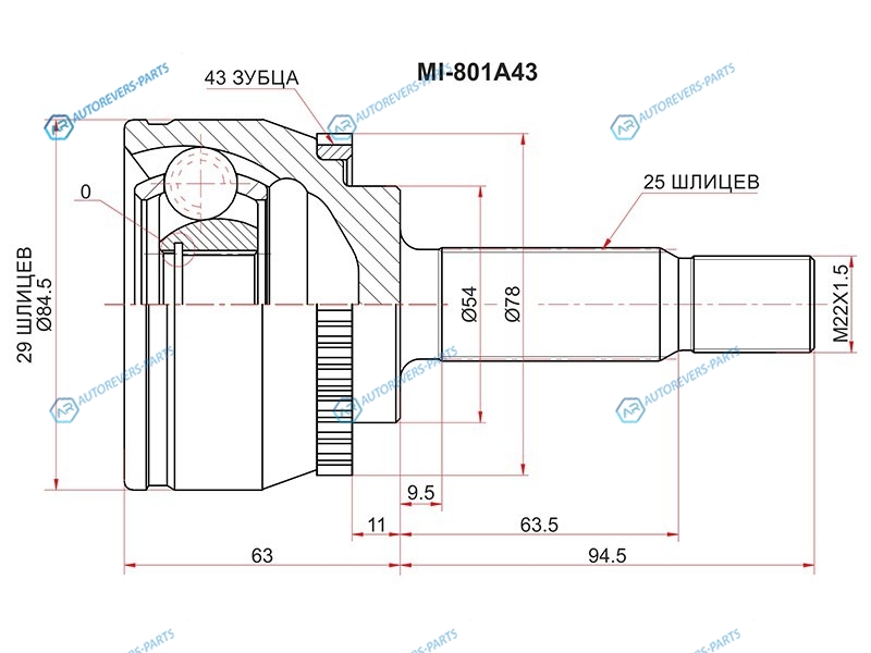 Шрус наружный MITSUBISHI CARISMA DA12A 96-06VOLVO S40 VS 94-04