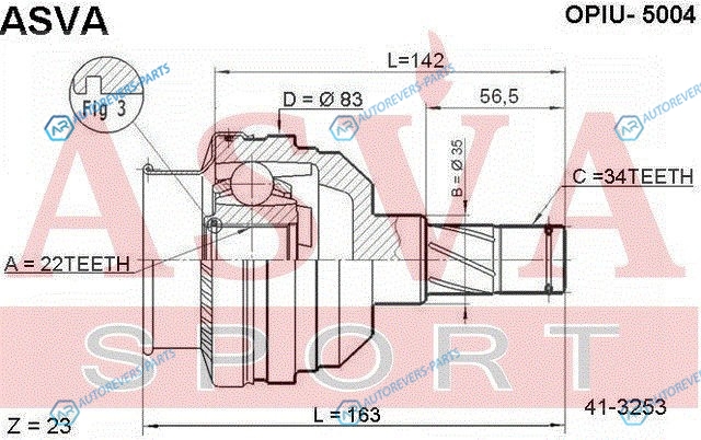 Сторона установки:со стороны коробки передач | Сторона установки:передний мост | Тип соединения сочленения:Шарнир равных угловых скоростей | Внешнее зацепление со стороны дифференциала:34 | Внутреннее зубчатое соединение со стороны дифференциала:22 | Диаметр прокладки [мм]:35