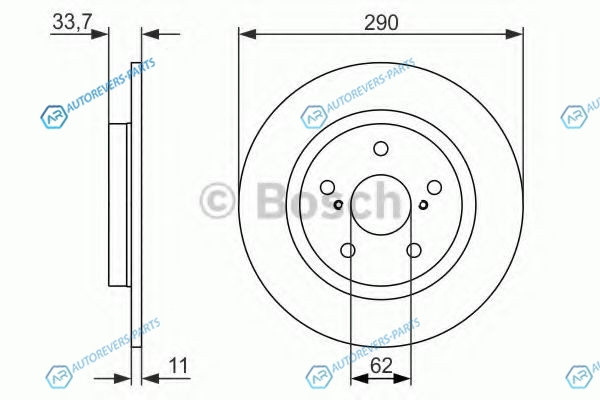 Диаметр [мм]:290 | Толщина тормозного диска (мм):11 | Минимальная толщина [мм]:9 | Тип тормозного диска:полный | Диаметр ступицы колеса [мм]:62 | Количество отверстий:5 | ? фаски [мм]:114.3 мм | Поверхность:промасленный | выполняет нормы ЕЭК:ECE-R90 | Наружный диаметр [мм]:290 | Высота [мм]:33.8 | Диаметр центрирования [мм]:62 | Диаметр отверстия до [мм]:14.7