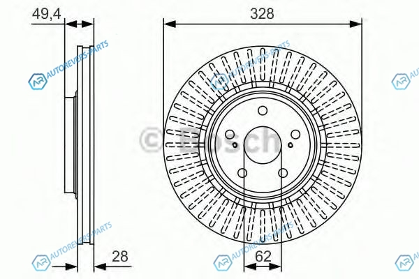 Диаметр [мм]:328 | Толщина тормозного диска (мм):28 | Минимальная толщина [мм]:25 | Высота [мм]:49.4 | Тип тормозного диска:с внутренней вентиляцией | Диаметр ступицы колеса [мм]:62 | Количество отверстий:5 | Вес [кг]:9.08 | ? фаски [мм]:114.3 мм | Наружный диаметр [мм]:328 | Диаметр центрирования [мм]:62 | Поверхность:промасленный | Диаметр отверстия до [мм]:14.5 | выполняет нормы ЕЭК:ECE-R90