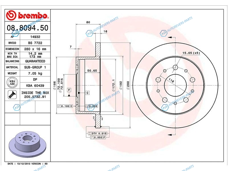 Купить 08.8094.50 Диск тормозной зад FIAT DUCATO 06- CITROEN JUMPER PEUGEOT BOXER (R15) Brembo на автомобили CITROEN JUMPER 06-14 | FIAT DUCATO (X250) 06-14 | PEUGEOT BOXER 06-14 и оформить заказ вы можете у нас на сайте или позвонить нашему консультанту.