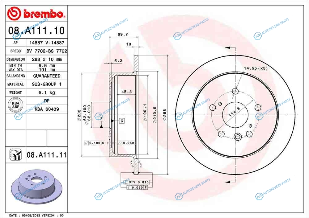 для артикула №:08.A111.11 | Тип тормозного диска:полный | Диаметр [мм]:288 | Толщина тормозного диска (мм):10 | Минимальная толщина [мм]:8.5 | Высота [мм]:69.7 | Диаметр центрирования [мм]:62 | Количество отверстий:5 | Момент затяжки [Нм]:103 | Поверхность:с покрытием | Наружный диаметр [мм]:288 | Высота [мм]:79 | Глубина [мм]:330 | Ширина [мм]:322