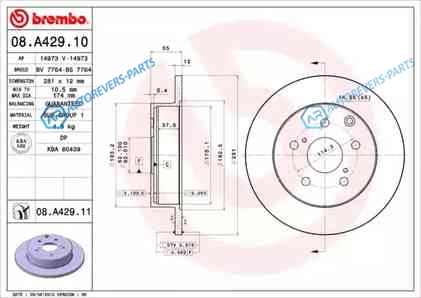 Купить 08.A429.10 Диск тормозной Standard | зад Brembo на автомобили LEXUS - HS:250h TOYOTA - RAV 4 IV (_A4_):2.0 4WD (ZSA44_) 2.0 D (WWA42_) 2.0 D 4WD (ALA41_) 2.5 Hybrid (AVA42_ AVA44_) 2.5 Hybrid 4WD (AVA44_)RAV4:2.0 2.0 4WD 2.0 D4-D 2.0 VVT-i 2.0 VVT-i 4WD 2.2 D-4D 2.2 D-4D 4WD 2.2 D-CAT 4WD 2.2 D4-D 4WD 2.4 VVTi 2.4 V и оформить заказ вы можете у нас на сайте или позвонить нашему консультанту.