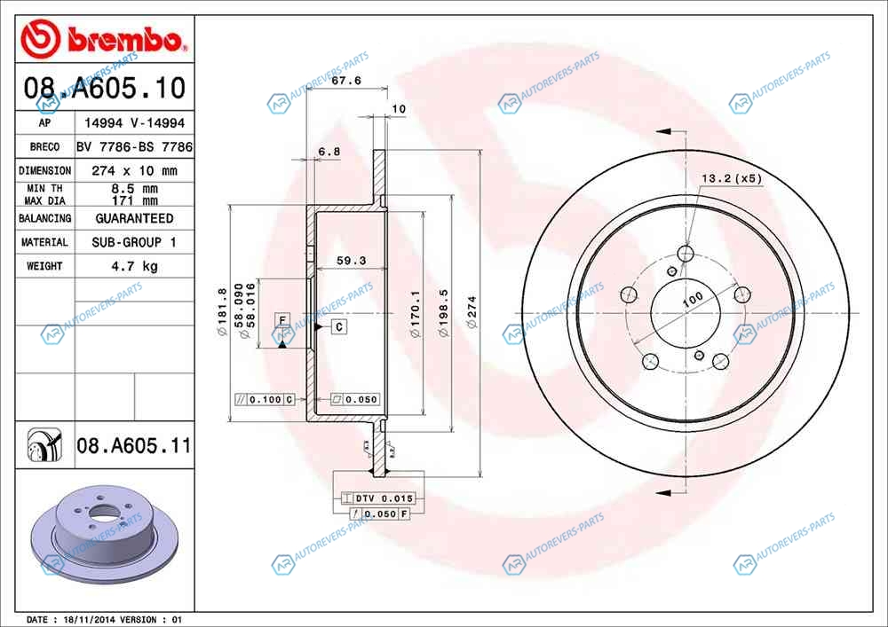 Купить 08.A605.11 Диск тормозной UV Coated | зад Brembo на автомобили SUBARU - LEGACY:2.0 2.0 D 2.0 R 2.5 2.5 iOUTBACK:2.0 2.0 D 2.5 3.0 и оформить заказ вы можете у нас на сайте или позвонить нашему консультанту.