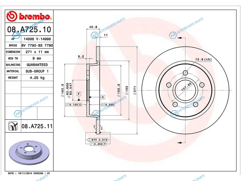 Купить 08.A725.10 Диск тормозной зад FORD FOCUS III 11- Brembo на автомобили FORD FOCUS III 11-19 и оформить заказ вы можете у нас на сайте или позвонить нашему консультанту.