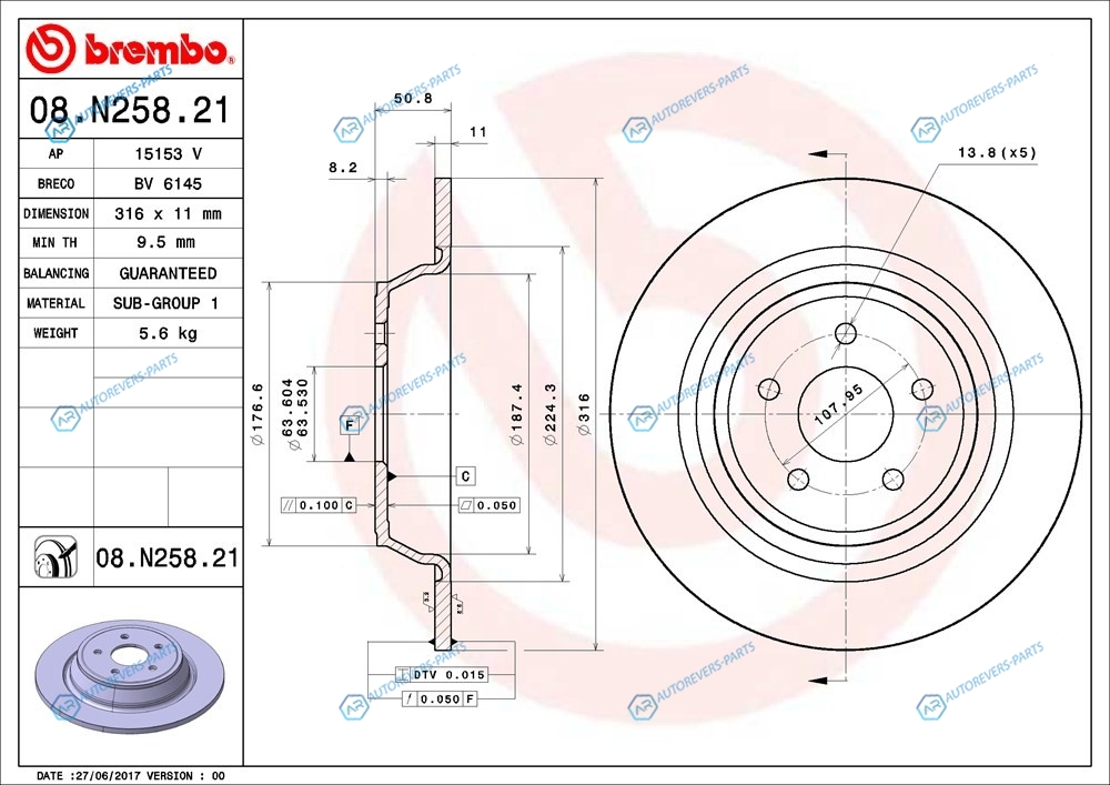 Высота [мм]:63 | Глубина [мм]:358 | Ширина [мм]:352 | Наружный диаметр [мм]:316 | Диаметр [мм]:316 | Высота [мм]:50.8 | Тип тормозного диска:полный | Толщина тормозного диска (мм):11 | Минимальная толщина [мм]:9.5 | Количество отверстий:5 | Диаметр центрирования [мм]:63.5 | Поверхность:с покрытием