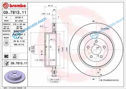 для артикула №:09.7813.11 | Тип тормозного диска:с внутренней вентиляцией | Диаметр [мм]:316 | Толщина тормозного диска (мм):20 | Минимальная толщина [мм]:18 | Высота [мм]:67.4 | Обработка:Высокоуглеродистый | Диаметр центрирования [мм]:58 | Количество отверстий:5 | Момент затяжки [Нм]:100 | Поверхность:с покрытием | Наружный диаметр [мм]:316