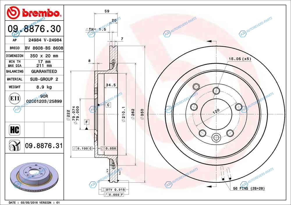 для артикула №:09.8876.31 | Тип тормозного диска:с внутренней вентиляцией | Диаметр [мм]:350 | Толщина тормозного диска (мм):20 | Минимальная толщина [мм]:17 | Высота [мм]:59 | Обработка:Высокоуглеродистый | Диаметр центрирования [мм]:79 | Количество отверстий:5 | Момент затяжки [Нм]:140 | Поверхность:с покрытием | для артикула №:09.8876.31 | Тип тормозного диска:с внутренней вентиляцией | Диаметр [мм]:350 | Толщина тормозного диска (мм):20 | Минимальная толщина [мм]:17 | Высота [мм]:59 | Обработка:Высокоуглеродистый | Диаметр центрирования [мм]:79 | Количество отверстий:5 | Момент затяжки [Нм]:140 | Поверхность:с покрытием | Наружный диаметр [мм]:350