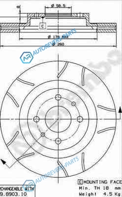 для артикула №:09.8903.75 | Тип тормозного диска:с внутренней вентиляцией | Диаметр [мм]:260 | Толщина тормозного диска (мм):20 | Минимальная толщина [мм]:18 | Высота [мм]:41.3 | Диаметр центрирования [мм]:58.5 | Количество отверстий:4 | Момент затяжки [Нм]:75 | Поверхность:с покрытием | Дополнительный артикул дополнительная информация 2:с винтами | Наружный диаметр [мм]:260