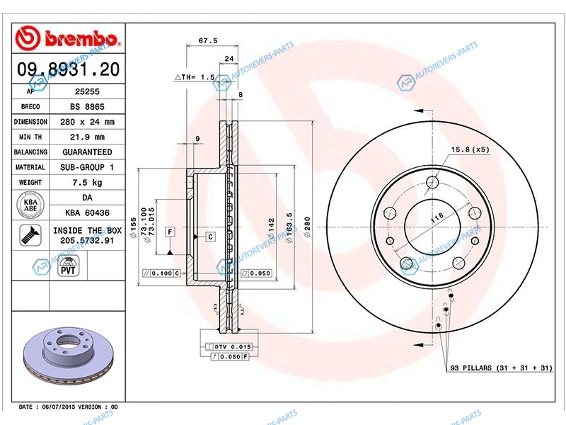 Купить 09.8931.20 Диск тормозной перед FIAT DUCATO 94- CITROEN JUMPER PEUGEOT BOXER 02- до1.5 тон (R15) Brembo на автомобили CITROEN JUMPER 94-06 | CITROEN JUMPER 06-14 | FIAT DUCATO (X244) 94-06 и оформить заказ вы можете у нас на сайте или позвонить нашему консультанту.