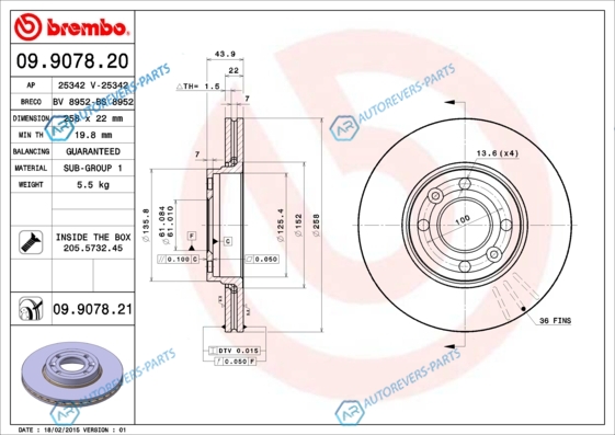 для артикула №:09.9078.21 | Тип тормозного диска:с внутренней вентиляцией | Диаметр [мм]:258 | Толщина тормозного диска (мм):22 | Минимальная толщина [мм]:19.8 | Высота [мм]:43.9 | Диаметр центрирования [мм]:61 | Количество отверстий:4 | Поверхность:с покрытием | Дополнительный артикул дополнительная информация 2:с винтами | Наружный диаметр [мм]:258 | Высота [мм]:61 | Глубина [мм]:280 | Ширина [мм]:280
