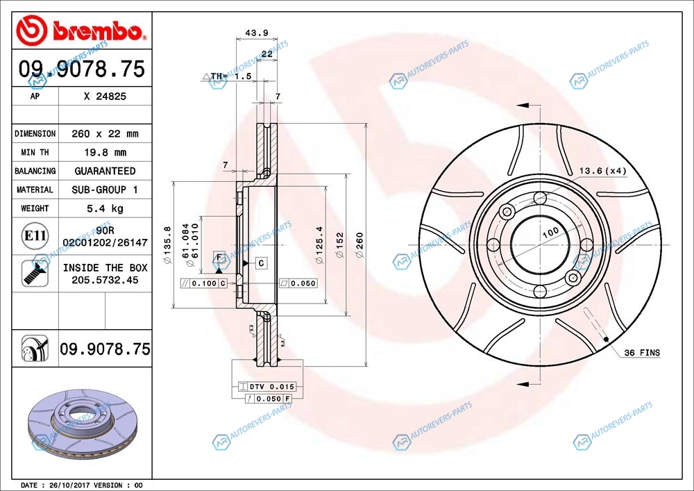 для артикула №:09.9078.75 | Тип тормозного диска:с внутренней вентиляцией | Диаметр [мм]:260 | Толщина тормозного диска (мм):22 | Минимальная толщина [мм]:19.8 | Высота [мм]:44 | Диаметр центрирования [мм]:61 | Количество отверстий:4 | Момент затяжки [Нм]:105 | Поверхность:с покрытием | Дополнительный артикул дополнительная информация 2:с винтами | Наружный диаметр [мм]:260 | Высота [мм]:270 | Глубина [мм]:107 | Ширина [мм]:270