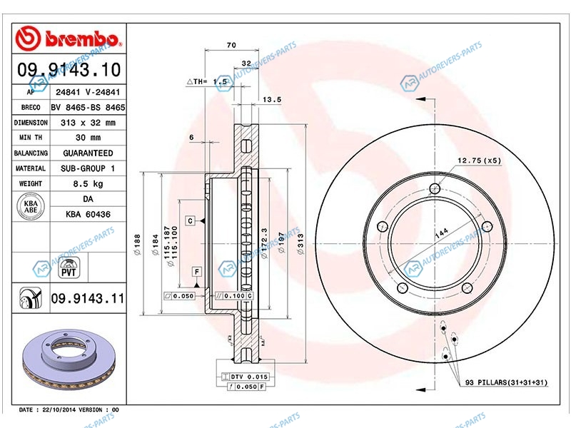 Купить 09.9143.11 Диск тормозной перед TOYOTA LAND CRUISER 100 Brembo на автомобили TOYOTA LAND CRUISER 100 98-07 и оформить заказ вы можете у нас на сайте или позвонить нашему консультанту.