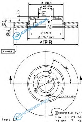 для артикула №:09.9464.11 | Тип тормозного диска:с внутренней вентиляцией | Диаметр [мм]:278 | Толщина тормозного диска (мм):25 | Минимальная толщина [мм]:23 | Высота [мм]:48.5 | Обработка:Высокоуглеродистый | Диаметр центрирования [мм]:63.5 | Количество отверстий:5 | Момент затяжки [Нм]:100 | Поверхность:с покрытием | Наружный диаметр [мм]:278 | Высота [мм]:53 | Глубина [мм]:302 | Ширина [мм]:294