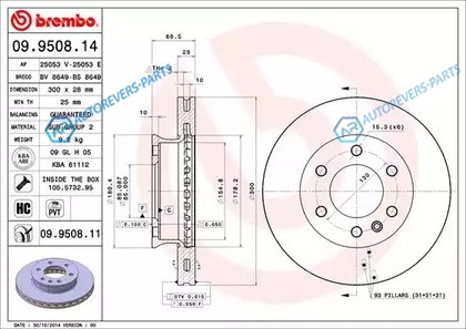 для артикула №:09.9508.11 | Тип тормозного диска:с внутренней вентиляцией | Диаметр [мм]:300 | Толщина тормозного диска (мм):28 | Минимальная толщина [мм]:25 | Высота [мм]:68.5 | Обработка:Высокоуглеродистый | Диаметр центрирования [мм]:85 | Количество отверстий:6 | Момент затяжки [Нм]:175 | Поверхность:с покрытием | Дополнительный артикул дополнительная информация 2:с винтами | Наружный диаметр [мм]:300 | Высота [мм]:94 | Глубина [мм]:326 | Ширина [мм]:318