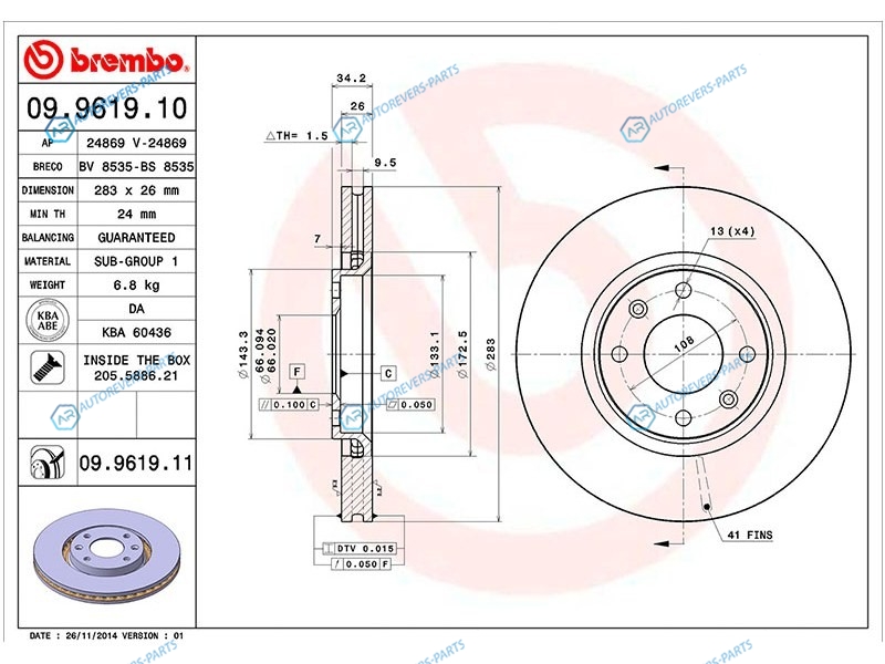 Купить 09.9619.10 Диск тормозной перед CITROEN BERLINGOC5C4PEUGEOT 207 05-307408 05- Brembo на автомобили CITROEN C5 00-08 | CITROEN XSARA 97-04 | CITROEN C3 10- и оформить заказ вы можете у нас на сайте или позвонить нашему консультанту.