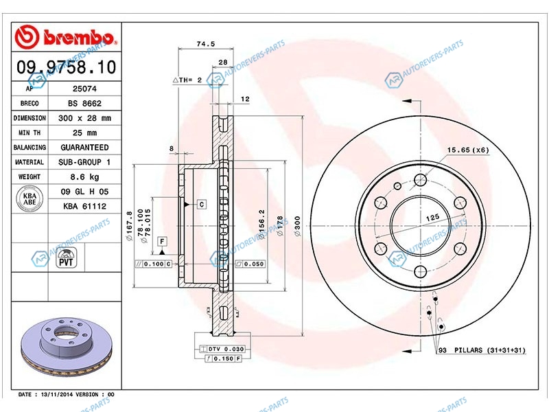 Купить 09.9758.10 Диск тормозной перед IVECO DAILY 06- Brembo на автомобили IVECO DAILY 06-13 и оформить заказ вы можете у нас на сайте или позвонить нашему консультанту.