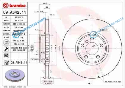 для артикула №:09.A542.11 | Тип тормозного диска:с внутренней вентиляцией | Диаметр [мм]:356 | Толщина тормозного диска (мм):36 | Минимальная толщина [мм]:34.4 | Высота [мм]:62 | Обработка:Высокоуглеродистый | Диаметр центрирования [мм]:75 | Количество отверстий:5 | Момент затяжки [Нм]:140 | Поверхность:с покрытием | Дополнительный артикул дополнительная информация 2:с винтами | Наружный диаметр [мм]:356