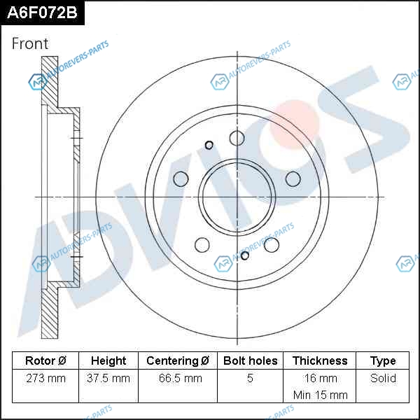 A6F072B Диск тормозной пер. ADVICS