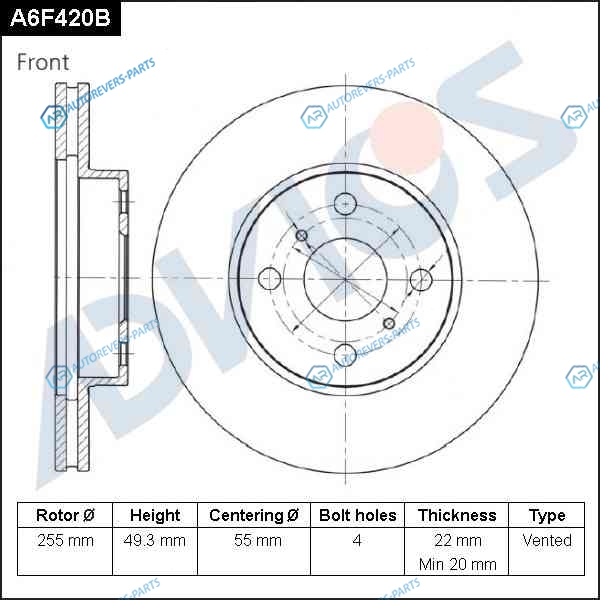 A6F420B Диск тормозной пер. ADVICS