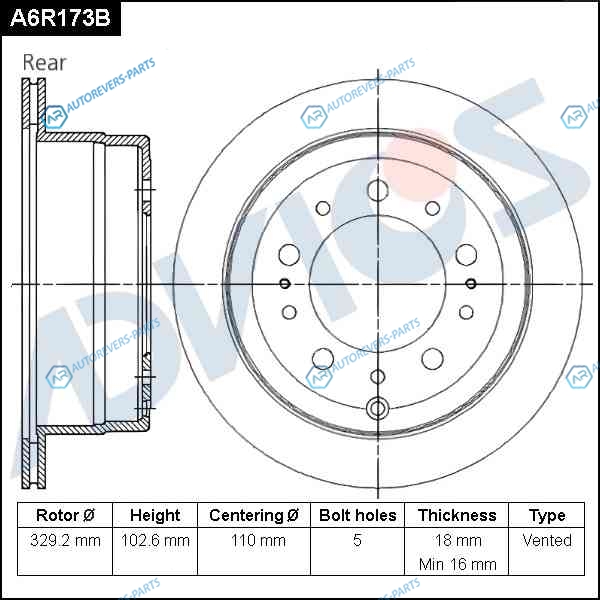 A6R173B Диск тормозной зад. ADVICS