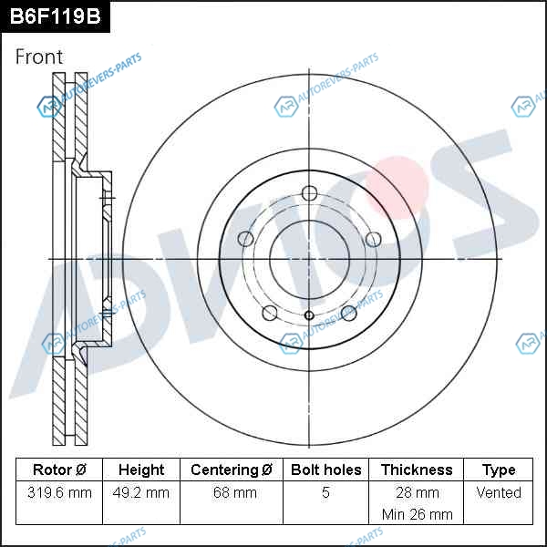 Купить B6F119B Диск тормозной пер. ADVICS ADVICS на автомобили (F) NISSAN MURANO Z50 (03-08) и оформить заказ вы можете у нас на сайте или позвонить нашему консультанту.