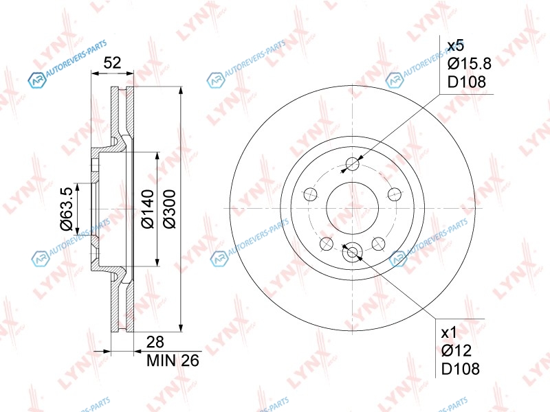 Высота [мм]:58 | Глубина [мм]:344 | Ширина [мм]:322 | Тип тормозного диска:вентилируемый | ? фаски [мм]:108 | Количество отверстий:5 | Внутренний диаметр:140 | Высота [мм]:52 | Диаметр центрирования [мм]:63.5 | Минимальная толщина [мм]:26 | Толщина тормозного диска (мм):28 | Диаметр [мм]:300 | Сторона установки:передний мост