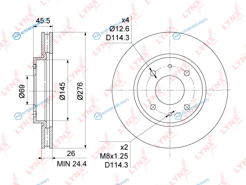 Сторона установки:передний мост | Диаметр [мм]:276 | Толщина тормозного диска (мм):26 | Минимальная толщина [мм]:24.4 | Диаметр центрирования [мм]:69 | Высота [мм]:45.5 | Внутренний диаметр:145 | Количество отверстий:4 | ? фаски [мм]:114.3 | Тип тормозного диска:вентилируемый | Высота [мм]:60 | Глубина [мм]:344 | Ширина [мм]:326