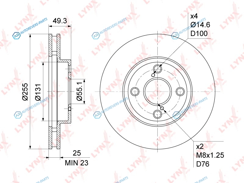 Высота [мм]:64 | Глубина [мм]:284 | Ширина [мм]:272 | Тип тормозного диска:вентилируемый | ? фаски [мм]:100 | Количество отверстий:4 | Внутренний диаметр:129 | Высота [мм]:49 | Диаметр центрирования [мм]:55 | Минимальная толщина [мм]:23 | Толщина тормозного диска (мм):25 | Диаметр [мм]:255 | Сторона установки:передний мост