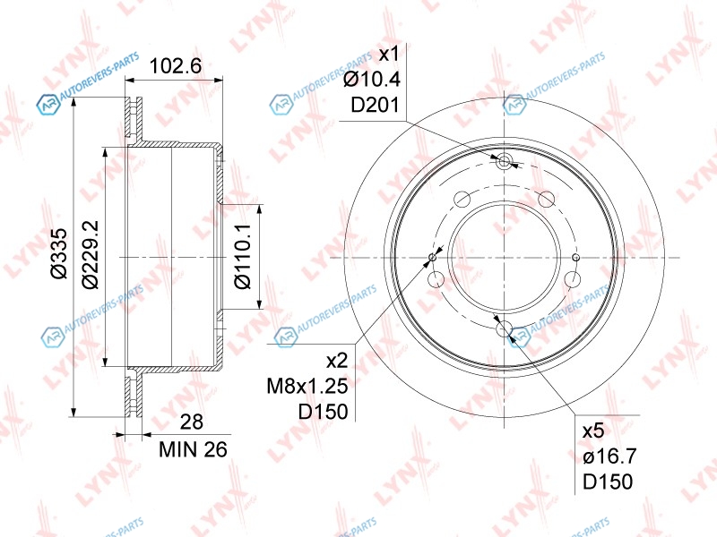 Тип тормозного диска:вентилируемый | Количество отверстий:5 | Высота [мм]:103 | Диаметр центрирования [мм]:110 | Минимальная толщина [мм]:16 | Толщина тормозного диска (мм):18 | Диаметр [мм]:335 | Сторона установки:задний мост