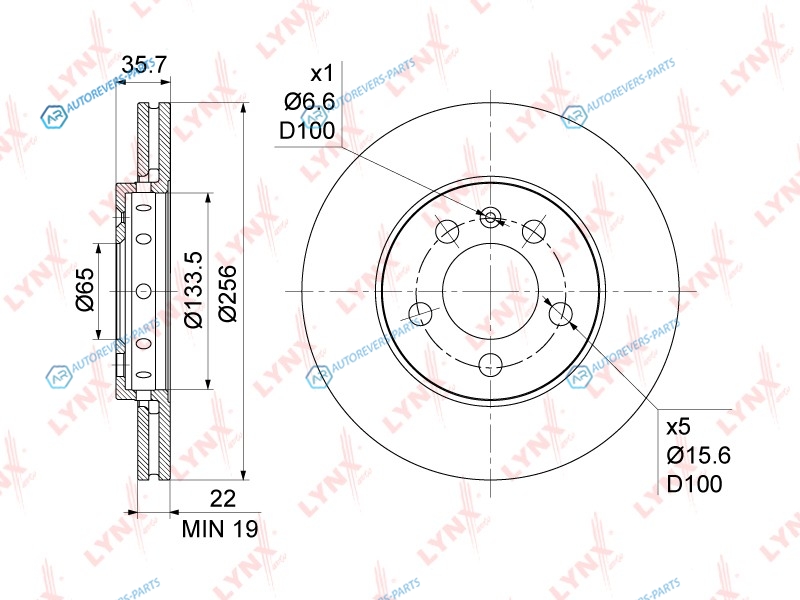 Высота [мм]:48 | Глубина [мм]:304 | Ширина [мм]:286 | Тип тормозного диска:вентилируемый | ? фаски [мм]:100 | Количество отверстий:5 | Внутренний диаметр:133.5 | Высота [мм]:37 | Диаметр центрирования [мм]:65 | Минимальная толщина [мм]:19 | Толщина тормозного диска (мм):22 | Диаметр [мм]:256 | Сторона установки:передний мост