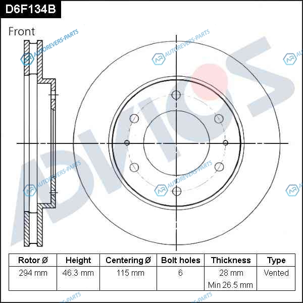 D6F134B Диск тормозной пер. ADVICS