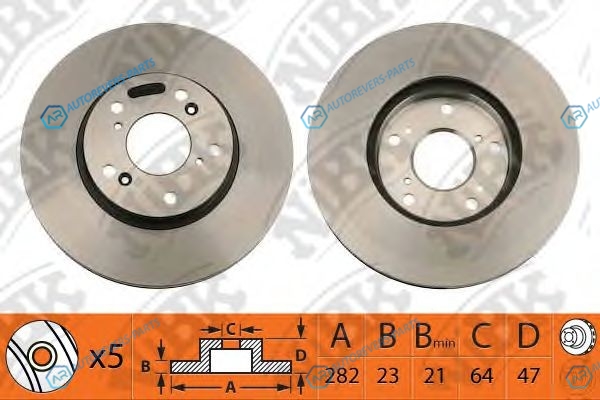 Сторона установки:передний мост | Тип тормозного диска:вентилируемый | Диаметр [мм]:282 | Толщина тормозного диска (мм):23 | Количество отверстий:5 | Высота [мм]:47 | ? фаски [мм]:114.3 | Наружный диаметр [мм]:282 | Диаметр центрирования [мм]:64 | Внутренний диаметр:141 | Высота [мм]:54 | Глубина [мм]:316 | Ширина [мм]:298