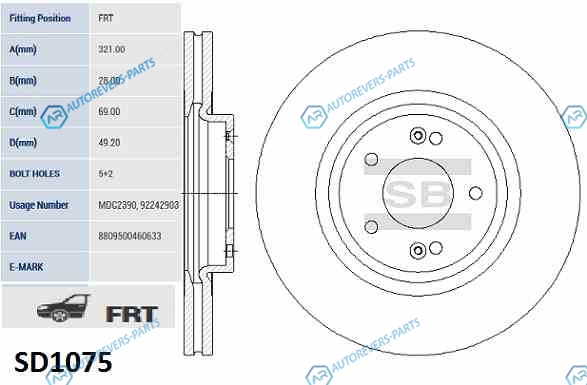 SD1075_диск тормозной передний!| KIA Sorento| Hyundai Santa Fe 2.0-2.4i|CRDi 09>