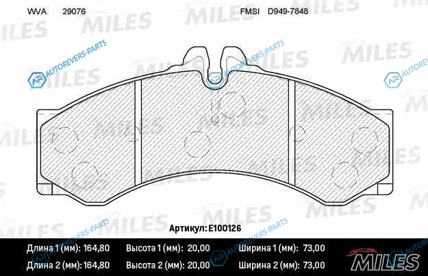 Купить E100126 Колодки тормозные (смесь Semi-Metallic) передние (MB Sprinter 95-06. VW LT 96-06 [164.8*73*19]) (без датчика + болты) (TRW GDB1288) E100126 MILES на автомобили Колодки тормозные (смесь Semi-Metallic) передние (MB Sprinter 95-06 VW LT 96-06 [164.8*73*19]) (без датчика + болты) (TRW GDB1288) E100126 и оформить заказ вы можете у нас на сайте или позвонить нашему консультанту.