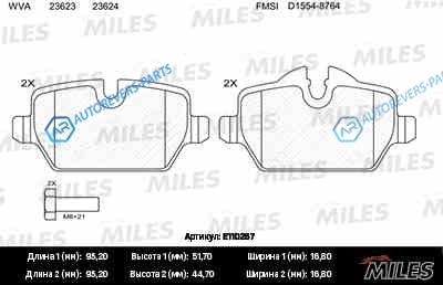 Купить E110267 Колодки тормозные (смесь Semi-Metallic) задние (BMW E81E87E90 1.6-2.0 04-) (без датчика + болты) (TRW GDB1612) E110267 MILES на автомобили Колодки тормозные (смесь Semi-Metallic) задние (BMW E81E87E90 1.6-2.0 04-) (без датчика + болты) (TRW GDB1612) E110267 и оформить заказ вы можете у нас на сайте или позвонить нашему консультанту.