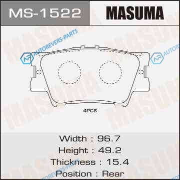 Купить MS-1522_колодки дисковые задние!| Toyota Rav4 2.4|3.5i|2.4D 4WD 06> Masuma на автомобили MS-1522_колодки дисковые задние!| Toyota Rav4 2.4|3.5i|2.4D 4WD 06> и оформить заказ вы можете у нас на сайте или позвонить нашему консультанту.