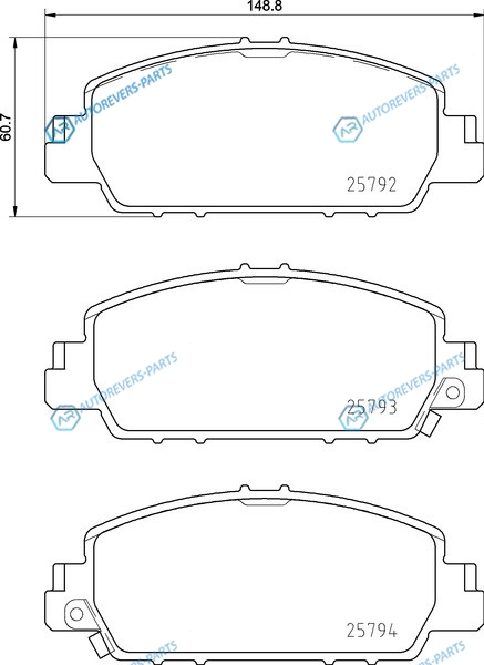 Ширина [мм]:148.6 мм | Высота [мм]:60.7 мм | Толщина [мм]:15.8 мм | Датчик износа:с звуковым предупреждением износа | Количество датчиков износа [на ось]:2 на ось | WVA номер:25792 | Длина упаковки [см]:17 | Ширина упаковки [см]:12 | Высота упаковки [см]:8.3 | Номер технической информации:PF8609 | Тормозная система:Akebono