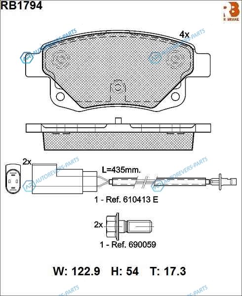 RB1794 Дисковые тормозные колодки R BRAKE (эл. датчик износа в компл.)