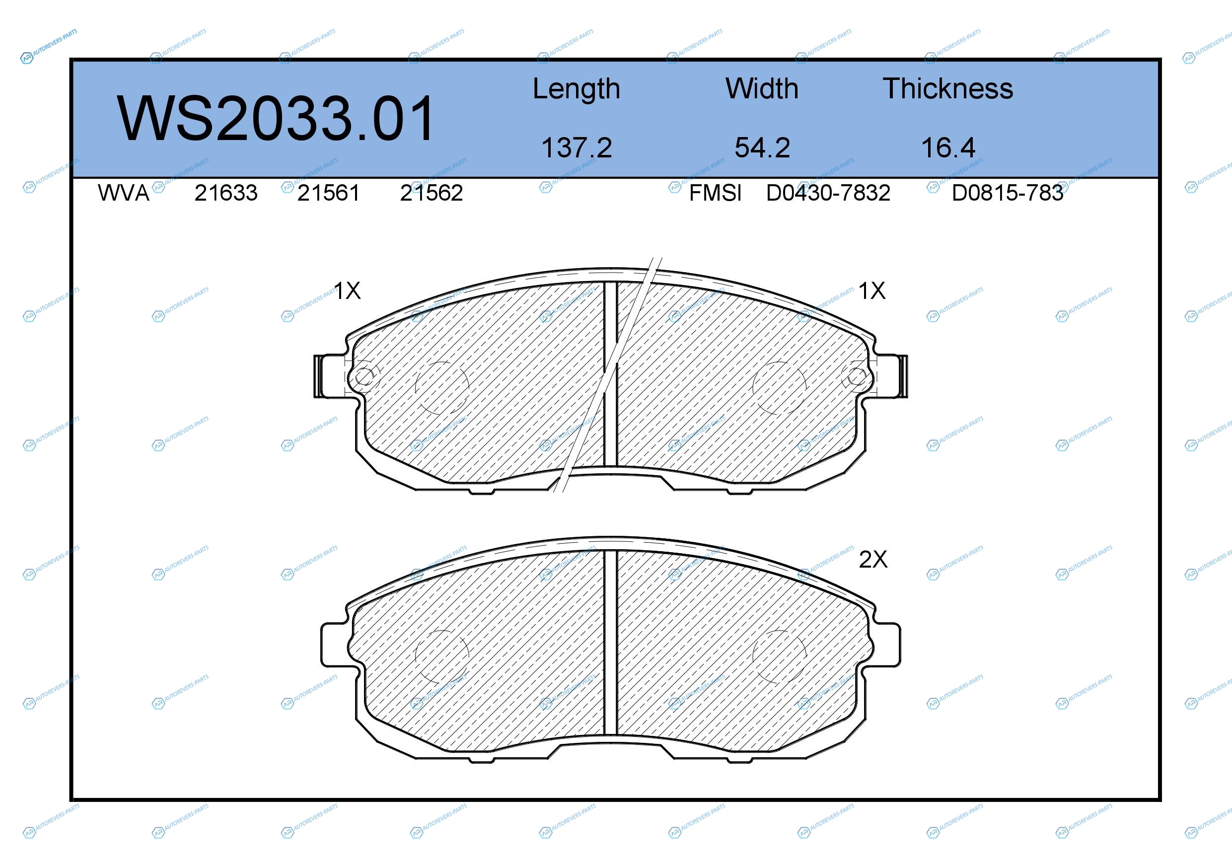 WS2033.01 Колодки тормозные дисковые | перед