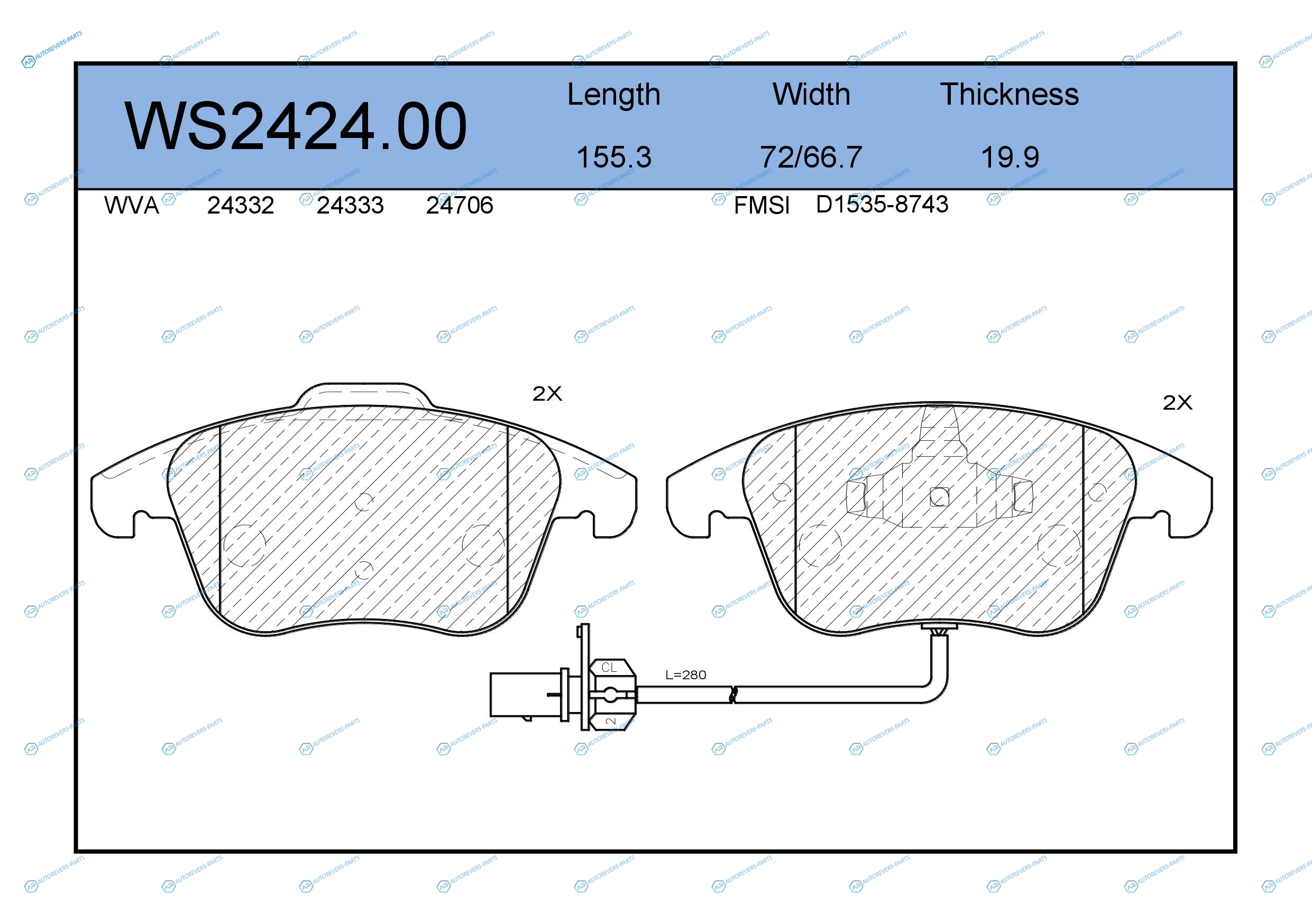 WS2424.00 Колодки тормозные дисковые | перед