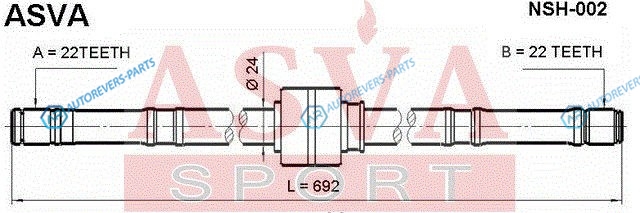 Сторона установки:передний мост справа | Длина [мм]:692 | Внешнее зацепление со стороны дифференциала:22 | Внешнее зацепление со стороны колеса:22