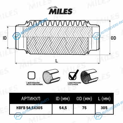 Купить HBFB54.5X305 Труба гофрированная с внутренним плетением 54.5X305 HBFB54.5X305 MILES на автомобили Труба гофрированная с внутренним плетением 54.5X305 HBFB54.5X305 и оформить заказ вы можете у нас на сайте или позвонить нашему консультанту.