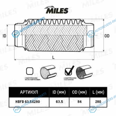 Купить HBFB63.5X280 Труба гофрированная с внутренним плетением 63.5X280 HBFB63.5X280 MILES на автомобили Труба гофрированная с внутренним плетением 63.5X280 HBFB63.5X280 и оформить заказ вы можете у нас на сайте или позвонить нашему консультанту.