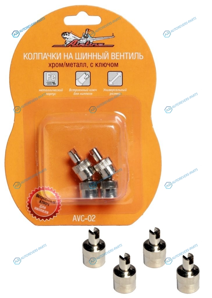 Купить AVC-02 Колпачки на шинный вентиль с ключом. хром. металл 4 шт.. комплект AIRLINE на автомобили и оформить заказ вы можете у нас на сайте или позвонить нашему консультанту.
