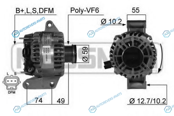 ток зарядки от генератора (А):124 | для артикула №:210362 | Напряжение [В]:14 | Идентификационный номер исполнения штекерного разъема:B+LSDFM | ? шкива [мм]:53 | Ременной шкив:с ременным шкивом свободного хода | Направление вращения:по часовой стрелке | Количество крепежных отверстий:2 | Количество канавок:6 | Расстояние от ременного шкива до генератора [мм]:49