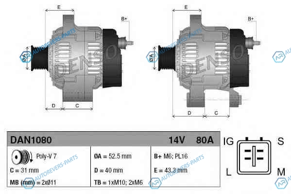 ток зарядки от генератора (А):80 | Количество ребер:7 | ? шкива [мм]:52.5 | Ременной шкив:с многоручейковым ручейковым шкивом | Модель бортовой сети:для транспортного средства с 12В бортовой сетью | Номинальное напряжение [V]:14 | Новая деталь: | Качество:OE | Напряжение [В]:14 | Высота [мм]:184 | Глубина [мм]:240 | Ширина [мм]:208