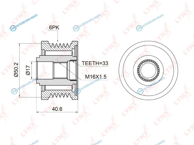 Диаметр 1диаметр 2 [мм]:50.217 | Ширина [мм]:40.6 | Количество ребер:6